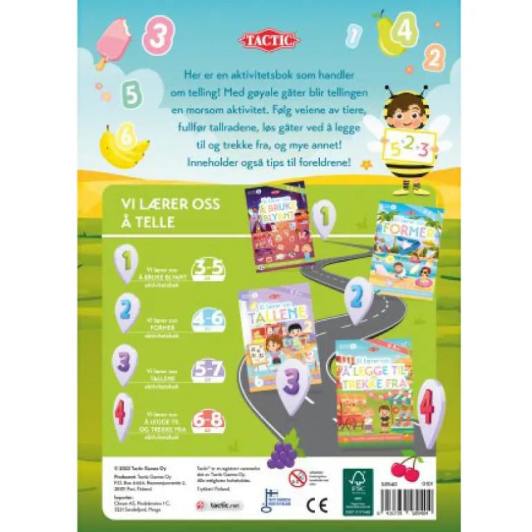 Her er en aktivitetsbok som handler om telling! Med gøyale gåter blir tellingen en morsom aktivitet. Følg veiene av tiere, fullfør tallradene, løs gåter ved å legge til og trekke fra, og mye annet! Inneholder også tips til foreldrene!