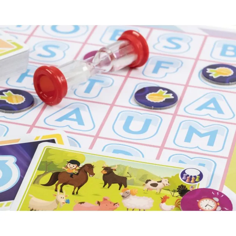 Se på bildene på kortene og se etter ting som starter med bokstavene på brettet ditt! For hver ting du navngir, kan du legge til en brikke på brettet ditt, og den første som danner en rad med 5 brikker vinner!