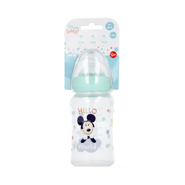 Delikat tåteflaske fra Disney Baby for de aller minste. Flasken er dekorert med Mikke Mus og har lysegønne detaljer. Flasken rommer 240ml, har silikonsmokk, lokk og kommer i BPA-fri plast. Kan fort bli favoritt-tåteflasken!