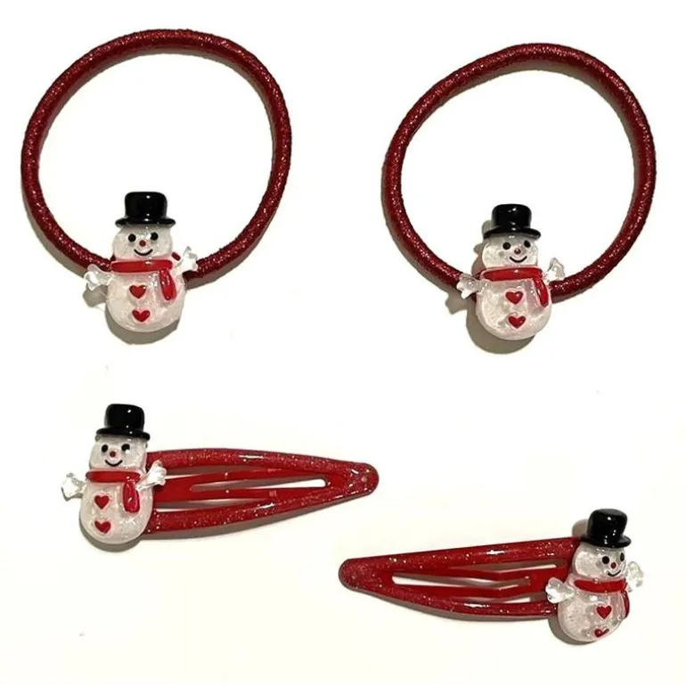 Tinka Beauty Jul Hårklemme/Hårstrikk 4-Pakning – Snømann