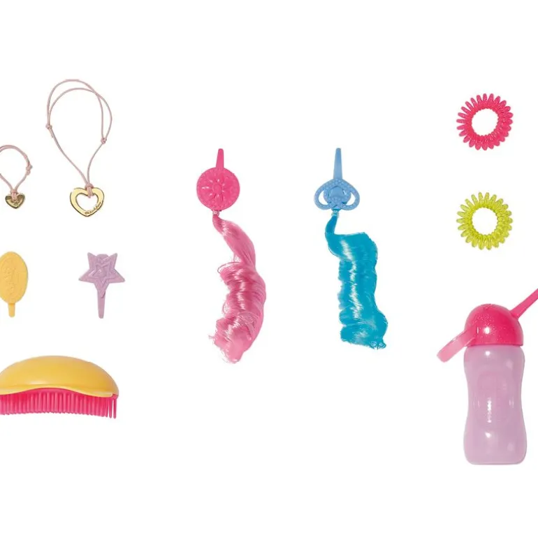 - Style det lange, flotte håret til Baby Born Sisters dukken med tilbehøret som følger med.