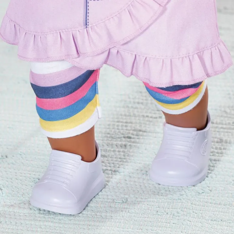 Denne søte Baby Born Sister dukken har langt, flott hår som du kan børste og style med det flotte tilbehøret! Bruk kammen for å børste det brune håret hennes og fest fargerike klemmer og hårforlengesler i håret for å gi henne en helt ny stil. Hårforlengelsen kommer i en rosa og turkis farge som matcher det stilige antrekket hennes. Baby Born Sister dukken har på seg en stripete tights i forskjellige farger, et lilla skjørt, et par hvite sko, og en rosa t-skjorte med et søtt hundemotiv. Fullfør utseende hennes med det flotte hjerte-smykket, og hjerte-armbåndet. Dukken kan til og med gråte ekte tårer når du gir henne vann med den rosa flasken!