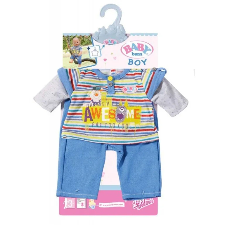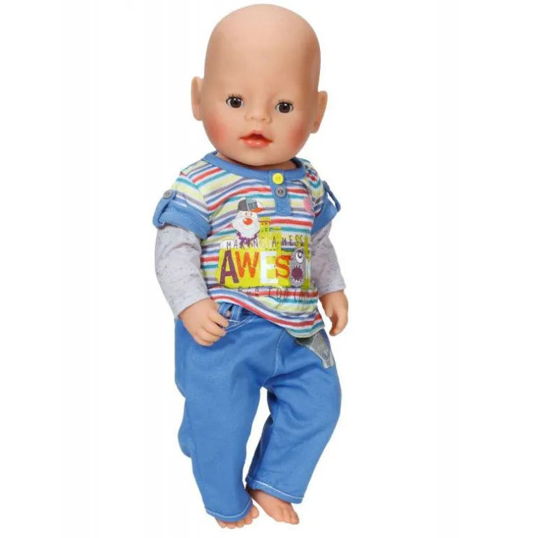 Stilig antrekk til din Baby Born dukke! Dette settet består av blå bukse og stripete overdel med fargerikt motiv (dukke selges separat). Anbefalt alder fra 3 år.