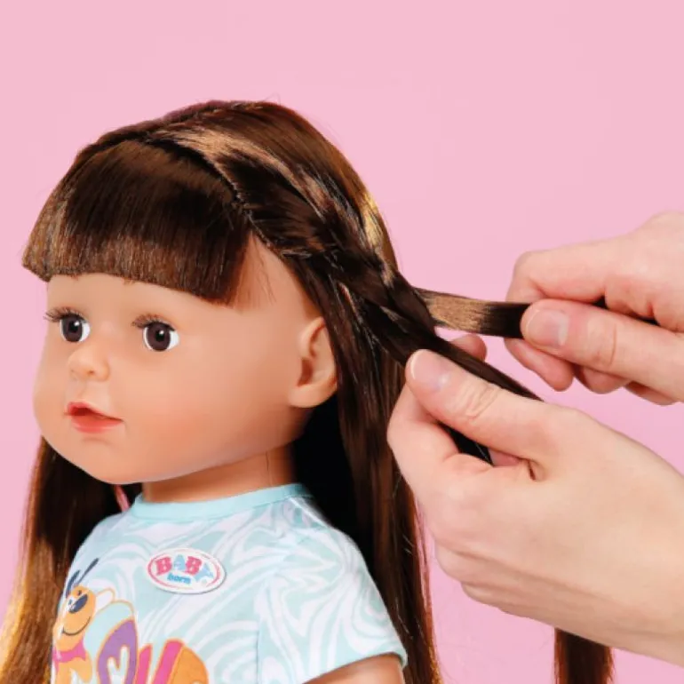 - Baby Born søster har langt brunt hår for styling