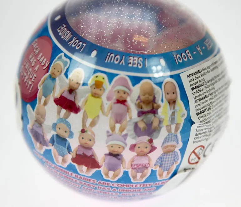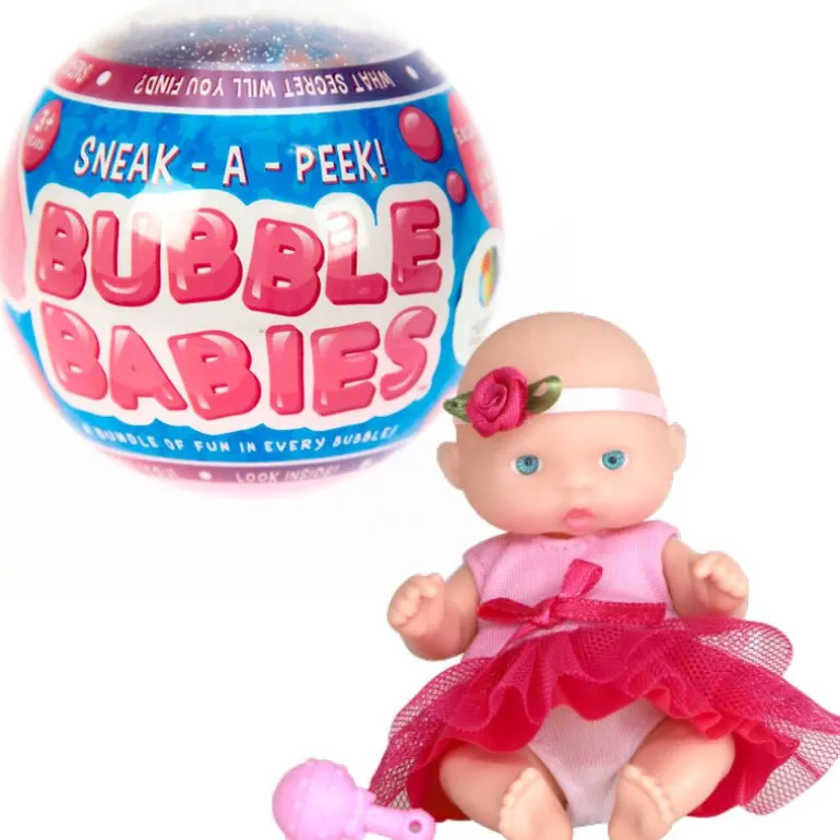 Bubble Babies er en spennende kule som skjuler en liten babydukke. Der finnes 12 ulike dukker å samle. Dukken måler ca 13 cm i høyde. Klærne kan tas av og på, og den har og en liten ting med seg i kulen.