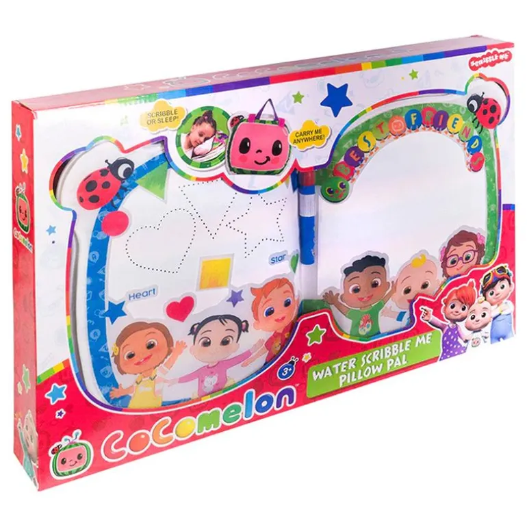 Lag, lær og lek med denne CoComelon Water Scribble me Pillow Pal. Det er 10 aktivitetssiderå fullføre. Bruk vannpennen og fargelegg for så å på magisk vis se blekke forsvinne. Denne aktivitets pute- boka gir deg timer med moro og læring hjemme eller på farta. Perfekt for din lille CoComelon- elsker. Aktivitetsboka kan lett legges sammen og glides igjen til en flott reisepute. Bær den med deg i håndtaket. Ikke giftig og sølfri.