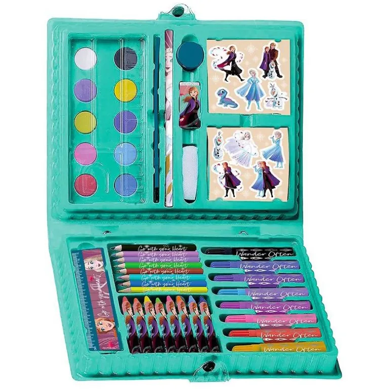 La barnet ditt utforske sin kreativitet med Disney Frost tegne- og malesettet! Dette alt-i-ett-settet er perfekt for små kunstnere som elsker eventyrene til Elsa og Anna. Med en rekke kunstneriske verktøy, inkludert tusjer, fargeblyanter, fargestifter og vannmaling, har barnet ditt alt de trenger for å lage fargerike mesterverk.