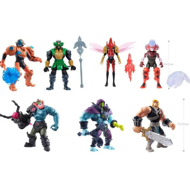 He-Man og The Masters of the Universe actionfigurer feirer Netflix-animasjonsserien med kule karakterfigurer for lek og visning! Inspirert av den animerte Netflix-serien, He-Man and The Masters of the Universe, er disse actionfigurene klare for kamp! Leketøyslinjen inneholder ikoniske karakterer fra både den gode og den onde siden av Eternia, så figurene er flotte for kamphandling og historiefortelling.
