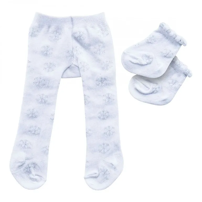 Flott strømpebukse og sokker i hvit med snøfnugg i sølv fra Heless.