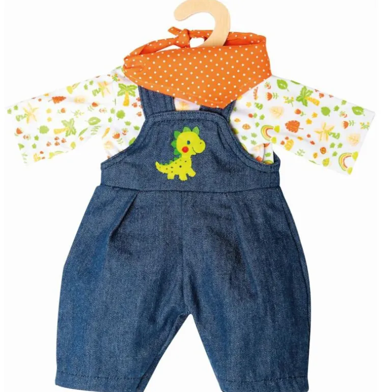 Dinosaurene er løse – og er nå også i ferd med å erobre dukkegarderoben. Med de kule dukkebuksene «Dino» fra Heless, komplett med T-skjorte og halsklede, er dukkene helt i trenden. T-skjorten med heldekkende trykk og halskledet i orange med hvite prikker gjør dinoantrekket komplett. Borrelåsfester på buksene og skjorten gjør det enkelt å ta på og av antrekket. Passer til alle dukker fra 35-45 cm. Dukke selges separat.