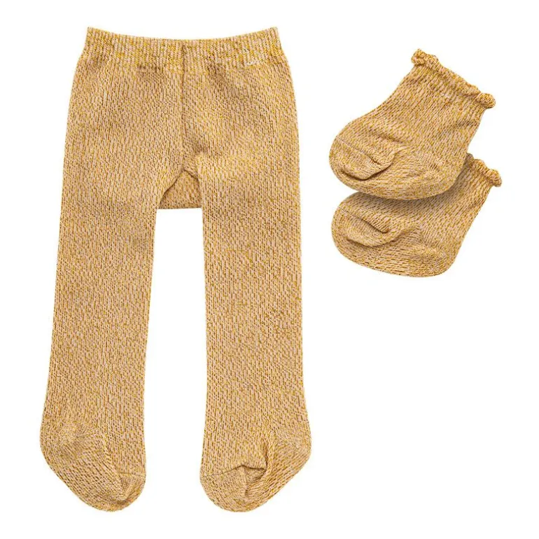 Flott strømpebukse og sokker i gull med snøfnugg i sølv fra Heless.