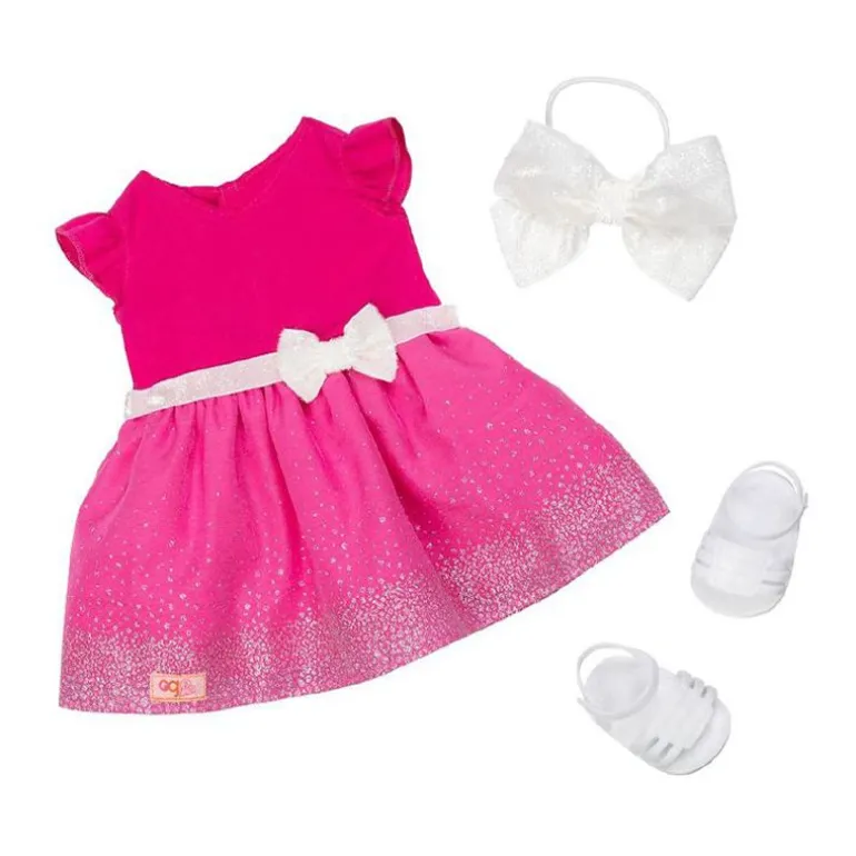 Planlegg en morsom kveld med Our Generation dukken – Joanna! Denne 46 cm dukken har pyntet seg og hun er klar for en fancy fest! Joanna har flotte brune øyne og langt, brunt hår som er morsomt å gre og style! Du kan til og med være kreativ med frisyren hennes og gi henne et helt nytt utseende! Antrekket hennes er enda mer imponerende med hennes pene rosa kjole med sløyfe og bedårende pannebånd med sløyfe. Joanna er pyntet og klar for en spennende aktivitet. Alt hun trenger er noen med overdådig fantasi – og hun hørte at noen kunne være deg!