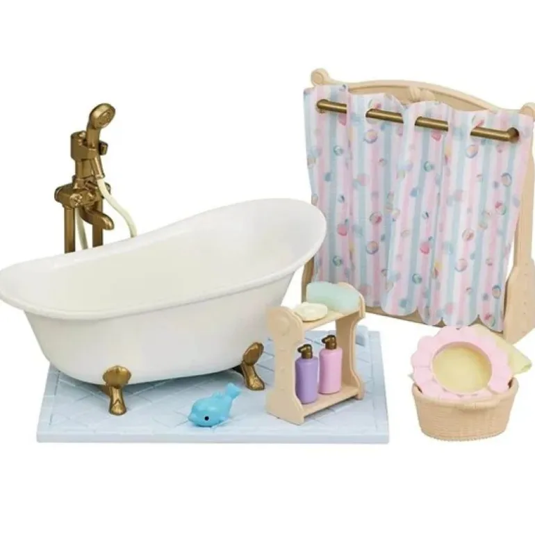 - Inneholder et detaljert badekar og dusjsett for realistisk baderomslek