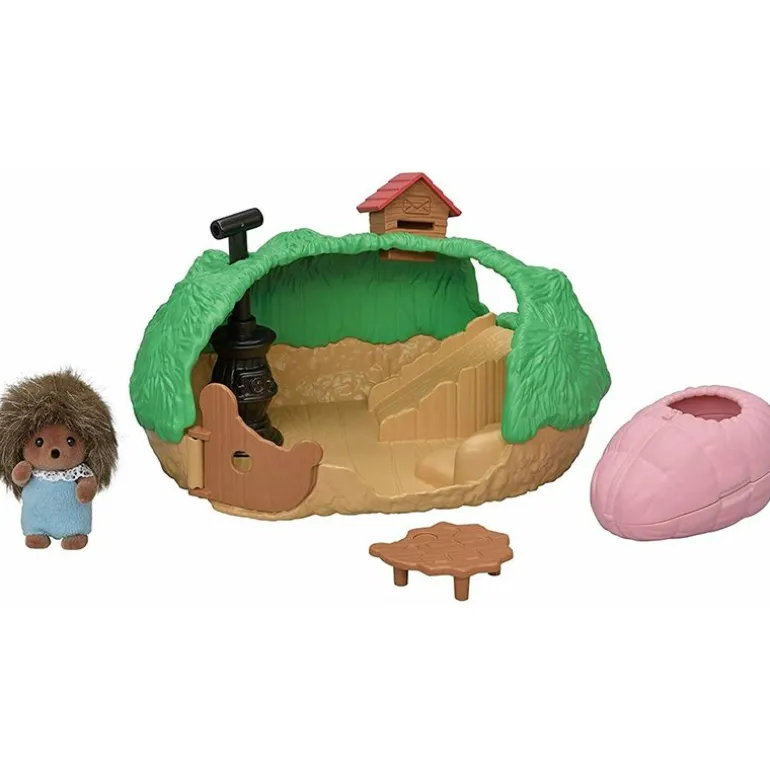 Baby pinnsvinet’s gjemmested er et hemmelig pinnsvinhus for en Pinnsvinbaby. Dette bedårende settet inkluderer en liten pinnsvinbaby-figur som elsker å leke gjemsel i sitt lille gjemmested. Pinnsvinbabyen ligger godt i soveposen! Inne i gjemmestedet er det en rutsjebane, et pinnsvinformet bord og en komfyr!