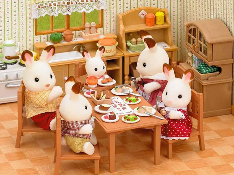 Sylvanian Families figurer og lekesett inspirerer til kreativ lek og stimulerer barnets fantasi gjennom morsomme historier og eventyr, der barn kan skape sine egne scenarier og rollespill. Sylvanian Families’ detaljerte design og myke teksturer gjør dem ideelle for både lek og visning. Legg til spisestue møbelsettet i samlingen og opplev den magiske verdenen av Sylvanian Families!