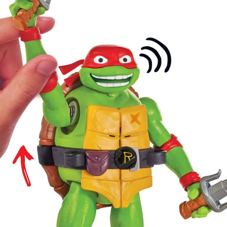 Gi et rop til denne 14 cm Ninja Shouts Raphael -figuren, og han kommer til å rope tilbake med sin autentiske filmstemme! Trekk armen eller beinet tilbake for å høre forskjellige fraser eller lydeffekter! Fortsett å holde på, så strekker han seg ut eller gjentar det han sier! Dette teamet med Turtles kommer til å være uslåelige!